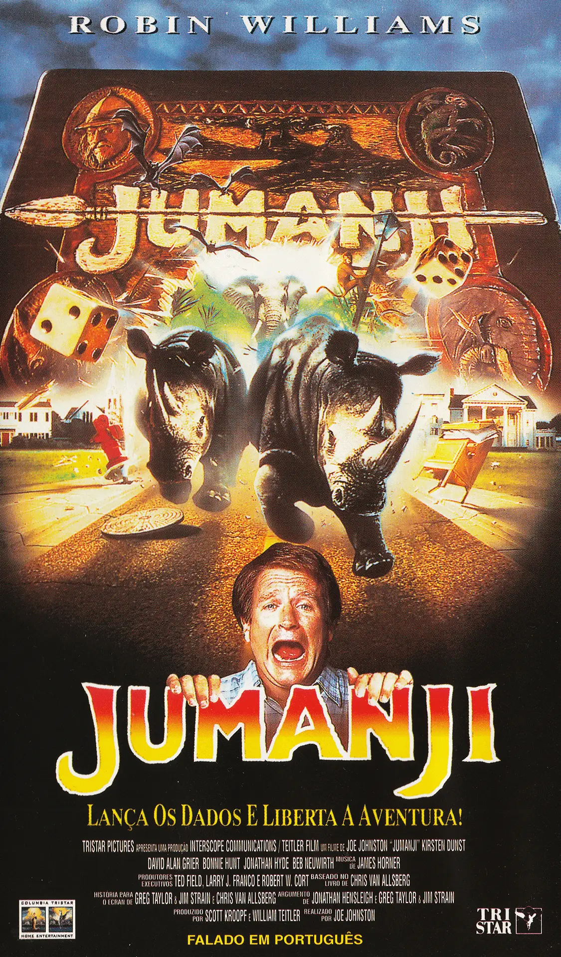 Quando Alan Parrish, um rapaz de 7 anos, descobre um misterioso jogo não se apercebe, imediatamente, do seu poder. Até que um dia, ao lançar os dados é transportado de forma mágica para a selva de Jumanji. Passaram 26 anos e duas crianças, Judy e Peter, vêm viver para a antiga casa de Alan. Descobrem o jogo, lançam os dados e... libertem toda a sua magia: macacos, leões, elefantes, mosquitos gigantes, que surgem por todo o lado numa sequência de acontecimentos irreais que parecem nunca acabar!! Será que Alan, agora livre do feitiço, conseguirá, juntamente com Judy e Peter, quebrar o poder do jogo?